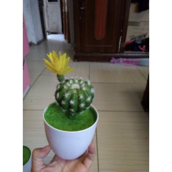 Cây giả cây xương rồng có hoa trang trí nhà cửa bền đẹp hoa giả