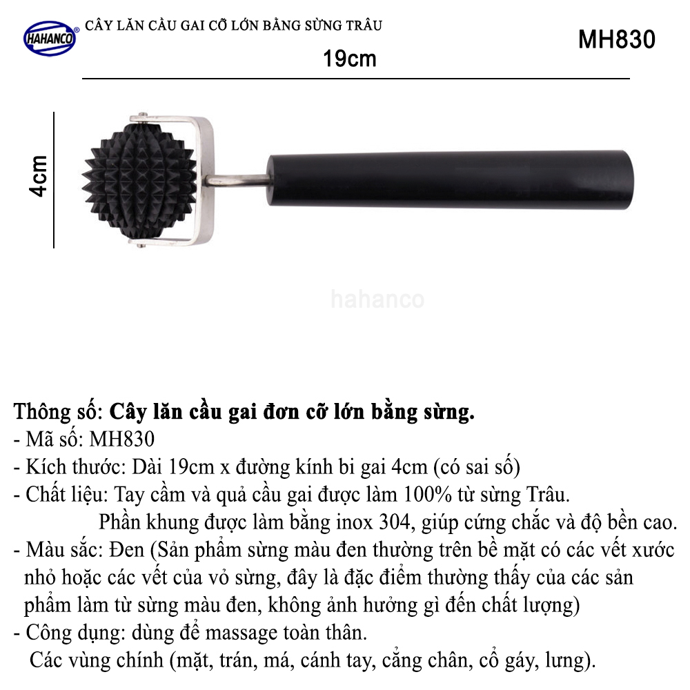 Quý khách lưu ý: đây là cây lăn cầu gai bằng sừng trâu đen. Cây lăn cầu gai bằng sừng có tác dụng chữa rất nhiều bệnh, lăn trên các huyệt đạo vùng mặt, cổ, vai, gáy, tay, chân. Lăn trên cổ giúp chữa vẹo cổ, lăn trên lưng giúp cột sống thẳng. Lăn nhẹ nhàng, tùy lực chúng ta cảm nhận, nếu lăn trên mặt nên lót 1 miếng vải mỏng trên mặt rồi lăn. Các bạn tìm video hướng dẫn sử dụng, hoặc nhờ bác sỹ tư vấn. Mấy tiệm mát xa Spa chăm sóc sức khỏe cho khách thì đảm bảo rất ok. Mô tả sản phẩm: - Mã Số: MH830 - Kích thước: Dài 18cm, quả cầu gai đường kính 4cm - Màu sắc: Màu đen (quả gai và tay cầm bằng sừng) - Số lượng: 1 chiếc - Chất liệu: Sừng Trâu Đây là dụng cụ điện chẩn làm từ chóp sừng, được các nghệ nhân làm thủ công cắt tỉa quả cầu gai rất tỉ mỉ, tay cầm nhẵn bóng trơn tru, gọn gàng Chú ý: Dụng cụ sừng này được sản xuất thủ công 100%, có độ sai lệch, họa tiết có thể được thay đổi bởi nhà sản xuất cho hợp xu hướng. Trong sừng có chứa chất (Keratin, Protein, Canxi ) là một loại dược liệu quý có tác dụng hỗ trợ chữa trị bệnh cho con người, khi sử dụng sẽ giúp tuần hoàn lưu thông khí huyết, phát tán chướng khí, không bị tĩnh điện. ️Dụng cụ lăn có tác dụng kích thích tế bào da. Chất liệu Sừng có khả năng phát tán chướng khí và thông khí huyết. ️Sử dụng tránh phơi nắng trực tiếp và ngâm trong nước để cho dụng cụ lúc nào cũng bền đẹp Góc cảnh báo: Tác hại cực nguy hiểm của những loại dụng cụ bằng nhựa hoặc loại khác khi tiếp xúc với da mặt, khi quệt lên mặt tạo ra ma sát gây tĩnh điện sẽ đốt cháy và làm tổn thương đến tế bào da mà mắt thường không nhìn thấy, lâu ngày làm hỏng da chết da, khi đến 1 thời kỳ nào đó da của bạn sẽ bị lão hóa không phanh. Hiện tượng tạo ra tĩnh điện có thể biết như sau: đơn giản nhất là chúng ta mặc các loại quần áo sử dụng chất liệu sợi tổng hợp (polyester hay nynon) khi người khác sờ vào thì bị giật nhói (thường hay bị ở mùa đông) Đây chính là nguyên nhân gây ra hiện tượng tĩnh điện. còn khi chúng ta mặc các loại quần áo dạng vải sợi tự nhiên như cotton thì sẽ không bị, thế nên dùng những chất liệu tự nhiên sẽ rất tốt cho sức khỏe. Quý khách chú ý: hiện nay rất nhiều cơ sở bán sản phẩm sừng giả, kém chất lượng, thường được làm bằng nhựa tái chế hoặc gỗ phíp nhưng vẫn ghi là sừng để đánh lừa người tiêu dùng. Để đảm bảo quyền lợi hãy chọn mua đúng sản phẩm sừng do CTy HAHANCO sản xuất. Cam kết: - Bảo hành: đổi chiếc mới ngay nếu sản phẩm lỗi do nhà sản xuất. - Sản phẩm được sản xuất từ sừng trâu. ️- Quy trình sản xuất: Sừng được xử lý ở nhiệt độ 225 độ C, diệt trùng toàn bộ. - Chất lượng được đặt lên hàng đầu. Người Việt dùng hàng Việt, ủng hộ để duy trì nghề và phát triển nghề thủ công tại các vùng quê.Giá sản phẩm trên Tiki đã bao gồm thuế theo luật hiện hành. Bên cạnh đó, tuỳ vào loại sản phẩm, hình thức và địa chỉ giao hàng mà có thể phát sinh thêm chi phí khác như phí vận chuyển, phụ phí hàng cồng kềnh, thuế nhập khẩu (đối với đơn hàng giao từ nước ngoài có giá trị trên 1 triệu đồng).....Sản phẩm này là tài sản cá nhân được bán bởi Nhà Bán Hàng Cá Nhân và không thuộc đối tượng phải chịu thuế GTGT. Do đó hoá đơn VAT không được cung cấp trong trường hợp này.