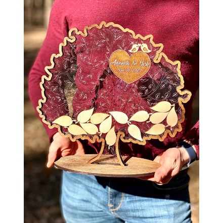 Cây Thả Lá Ký Tên Kèm Đế Gỗ Trang Trí Bàn Gallery | Thao Wedding Guestbook