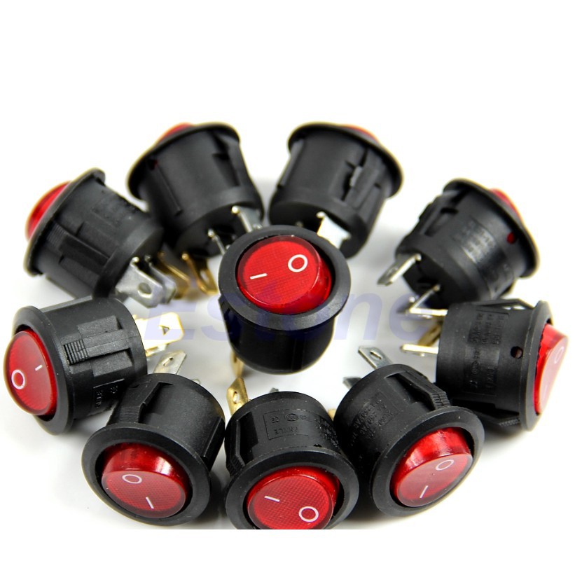 Công tắc bập bênh tròn có đèn led 3 chân 12v- 220v.