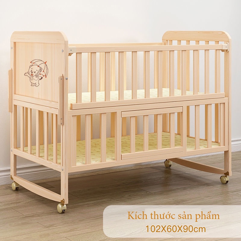Cũi Gỗ Cho Bé, Đa Năng Ghép Cạnh Giường Bố Mẹ, Kích thước 105x60x90cm