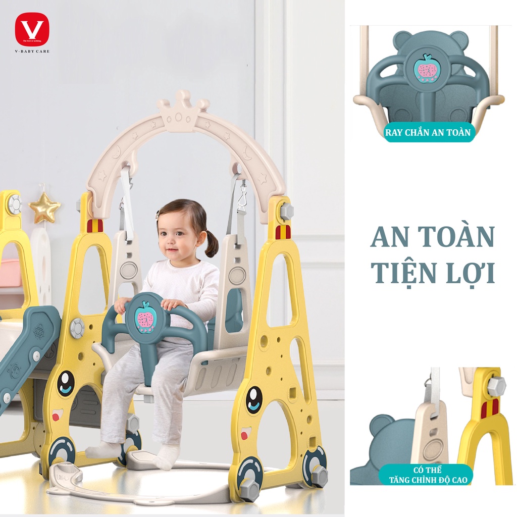 Cầu Trượt Xích Đu Cho Bé Cao Cấp V-Baby D05 Tặng Kèm Bóng Rổ Phù Hợp Trẻ Em 2 - 8 Tuổi và Phi Hành Gia V-Baby D08