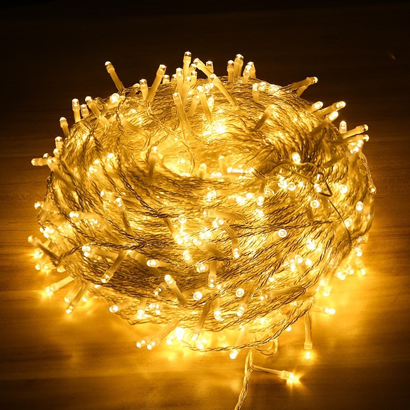 Cắm điện- Dây đèn led 10m 70 bóng đèn đom đóm chớp nháy trang trí tiệc lễ tết noel chân cắm tròn xịn