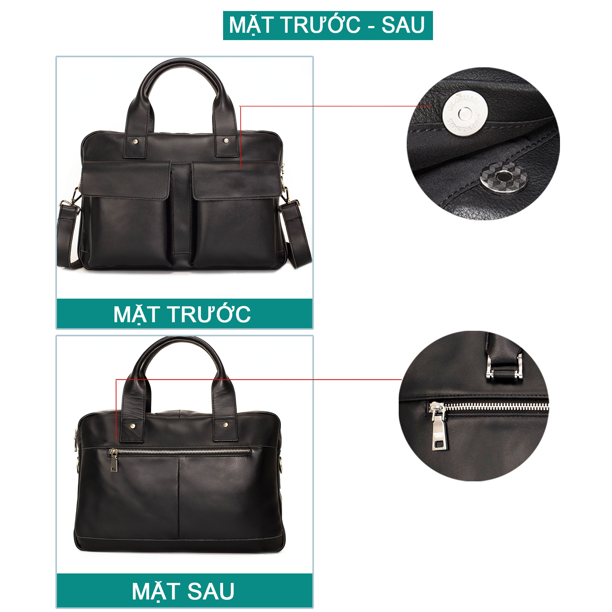 Cặp da nam công sở da bò mill cao cấp B102, cặp đựng laptop da thật nhiều ngăn, túi xách công sở nam đựng được nhiều tài liệu A4, Fullbox hộp sang trọng làm quà tặng, thương hiệu ...