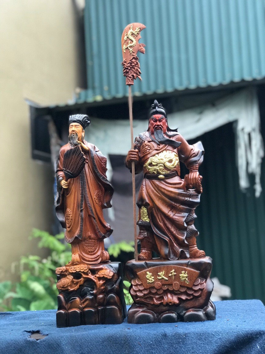 _ Cặp tượng khổng minh và quan công được làm bằng chất liệu gỗ hương đá liền khối tự nhiên 100% _ Kt cao 50 ngang mặt 18sâu15cm _ Cặp tượng khổng minh và quan công được điêu khắc trạm trổ vô cùng tỉ mỉ , Tinh sảo kỳ công ,.Đi hầu hết tất cả mọi chi tiết góc ngách của tượng đều được gọt tỉa chỉnh sửa sắc nét hoàn toàn bằng tay thủ công .Đồng thời tượng được kiểm định kỹ lưỡng khắt khe ,Như cho vào thẩm sấy cho gỗ khô kiệt .Mục đích trống dập nứt vênh mo mối mọt ,Kết hợp với trà nhám ,đánh giấy giáp nhiều nước sờ mát lạnh .Song rồi cho vào phun lót làm bóng mờ để giữ lại mầu sắc vân gỗ tự nhiên .Cũng tô làm mầu giả cổ như ảnh trên .Cặp tượng được làm và hoàn thiện do bàn tay khối óc tài hoa .Từ những người thợ giàu kinh nghiệm cũng như tay nghề cao trong làng nghề truyền thống .Chính vì thế cặp tượng quan công và khổng minh đã đáp ứng đầy đủ mọi tiêu trí cần thiết như ( Đẹp bền rẻ ) Thẩm mỹ nghệ thuật với chất lượng tuyệt vời Giá sản phẩm trên Tiki đã bao gồm thuế theo luật hiện hành. Bên cạnh đó, tuỳ vào loại sản phẩm, hình thức và địa chỉ giao hàng mà có thể phát sinh thêm chi phí khác như phí vận chuyển, phụ phí hàng cồng kềnh, thuế nhập khẩu (đối với đơn hàng giao từ nước ngoài có giá trị trên 1 triệu đồng).....