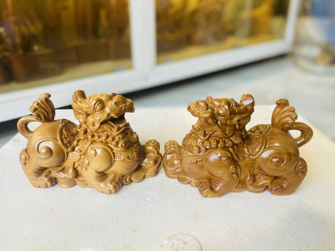 Cặp tỳ hưu phong thủy hút tài lộc bằng gỗ bách xanh thơm nức kt 20×12×8cm