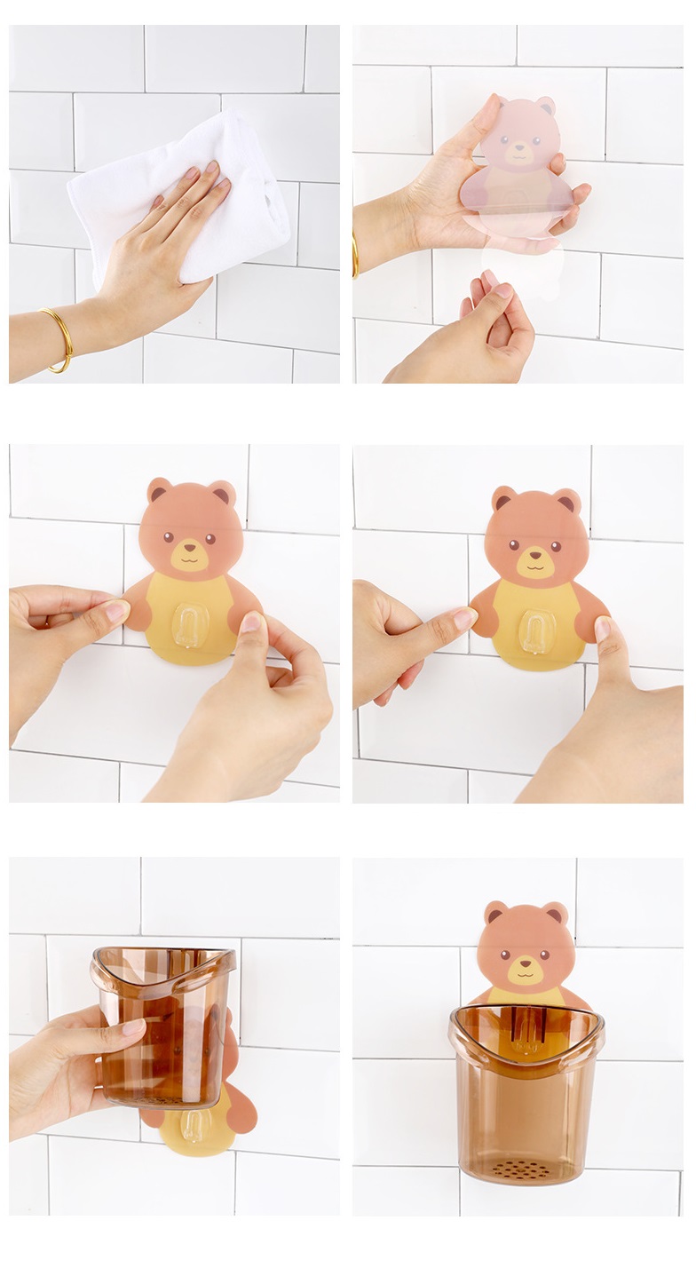 Cốc Gấu Đựng Đồ Đánh Răng, Ly Đựng Vật Dụng Dán Tường, Giá Đỡ Bàn Chải