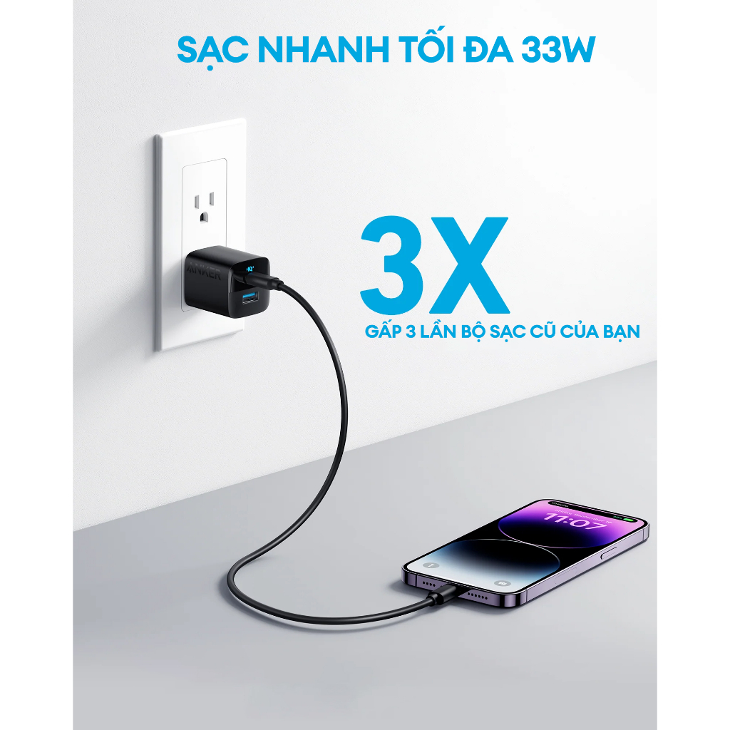 Cốc sạc Anker 323 1USB 1Type-C 33W PIQ 3.0/PD A2331 - Hàng chính hãng