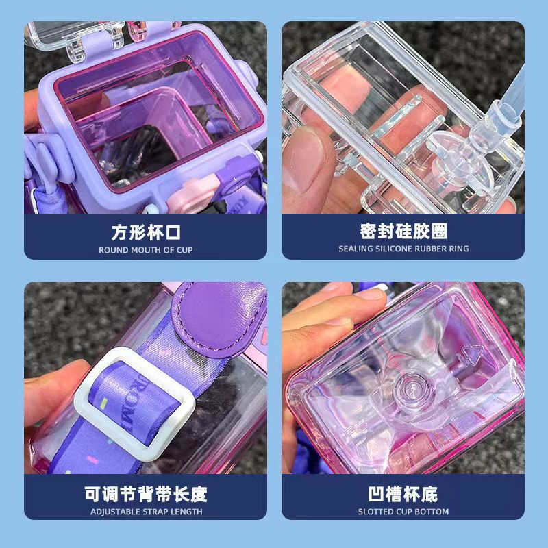 ☢ Cốc uống nước đôi Sanrio 550ml Dễ thương Cinnamoroll Kuromi Cốc có ống hút Chai nước hình vuông cầm tay Chai nước Kawaii Chai ống hút quà tặng