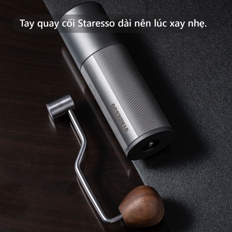 Cối xay Staresso là một dụng cụ xay cà phê cầm tay với thiết kế hiện đại, tính năng vượt trội và tiện lợi mang đi bất cứ đâu. - Làm từ chất liệu Titanium cứng, sắc, cắt mịn và giữ nguyên hương vị cafe. - Độ mịn cafe tùy chỉnh, áp ứng nhiều kiểu pha cafe: espresso,caf