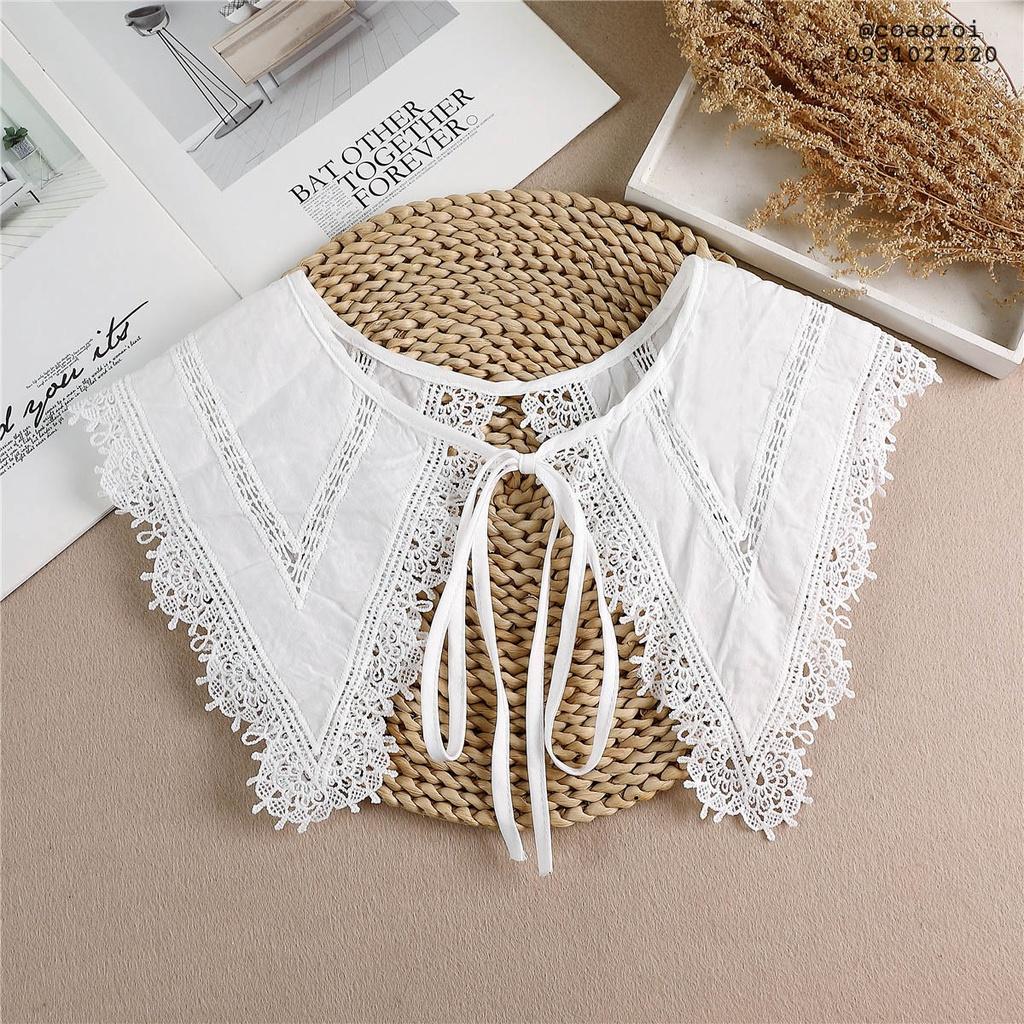 Cổ áo ren tháo rời phối cùng trang phục không cổ phong cách tiểu thư - Mã CT36