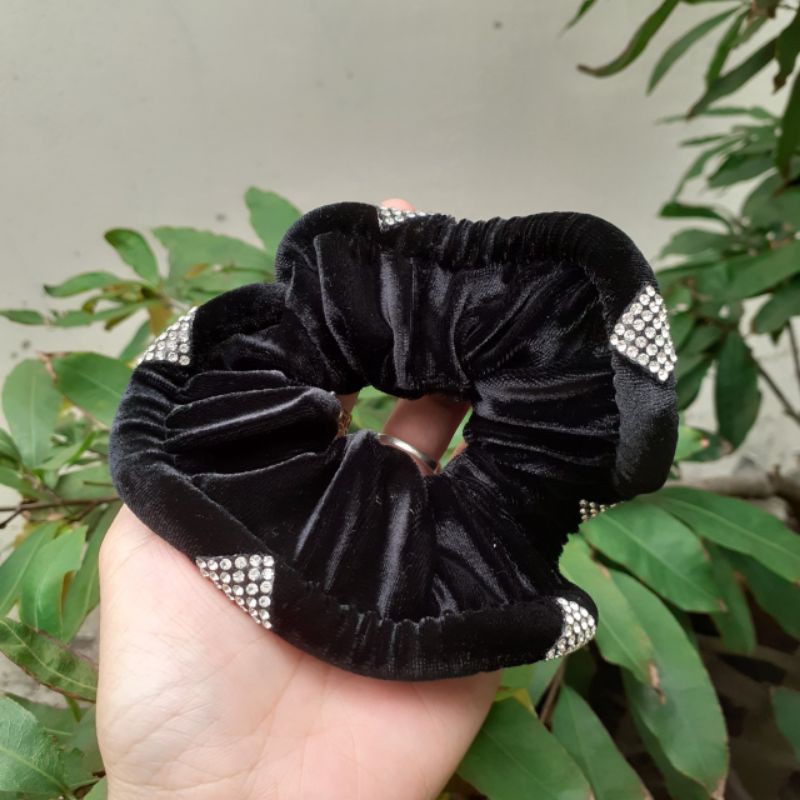 Cột tóc nhung đen đính hạt (ảnh thật) Chất liệu: vải nhung Màu sắc: đen,đính hạt Số lượng : 1 cái
