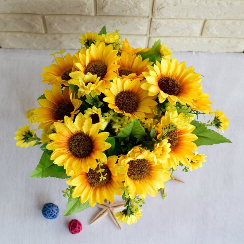 HOA HƯỚNG DƯƠNG 1 CỤM GỒM 10 BÔNG HOA LỚN VÀ CÁC BÔNG HOA NHỎ. CÓ CỎ LÁ ĐIỂM TRANG TRÍ KÈM. DÙNG CẮM. BÌNH CẮM LẴNG CỰC SANG. SỈ SLL 0944100246