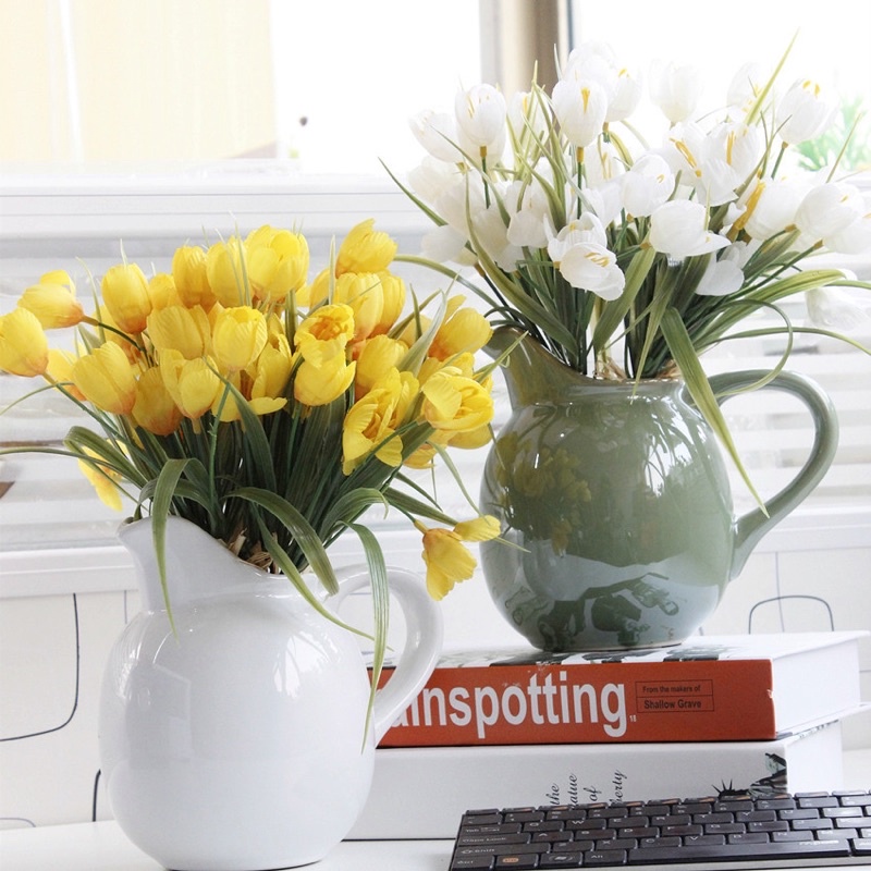 Cụm hoa tulip mini 11cm vàng từ lụa xinh xắn tươi tắn dùng trang trí nội thất nhà cửa
