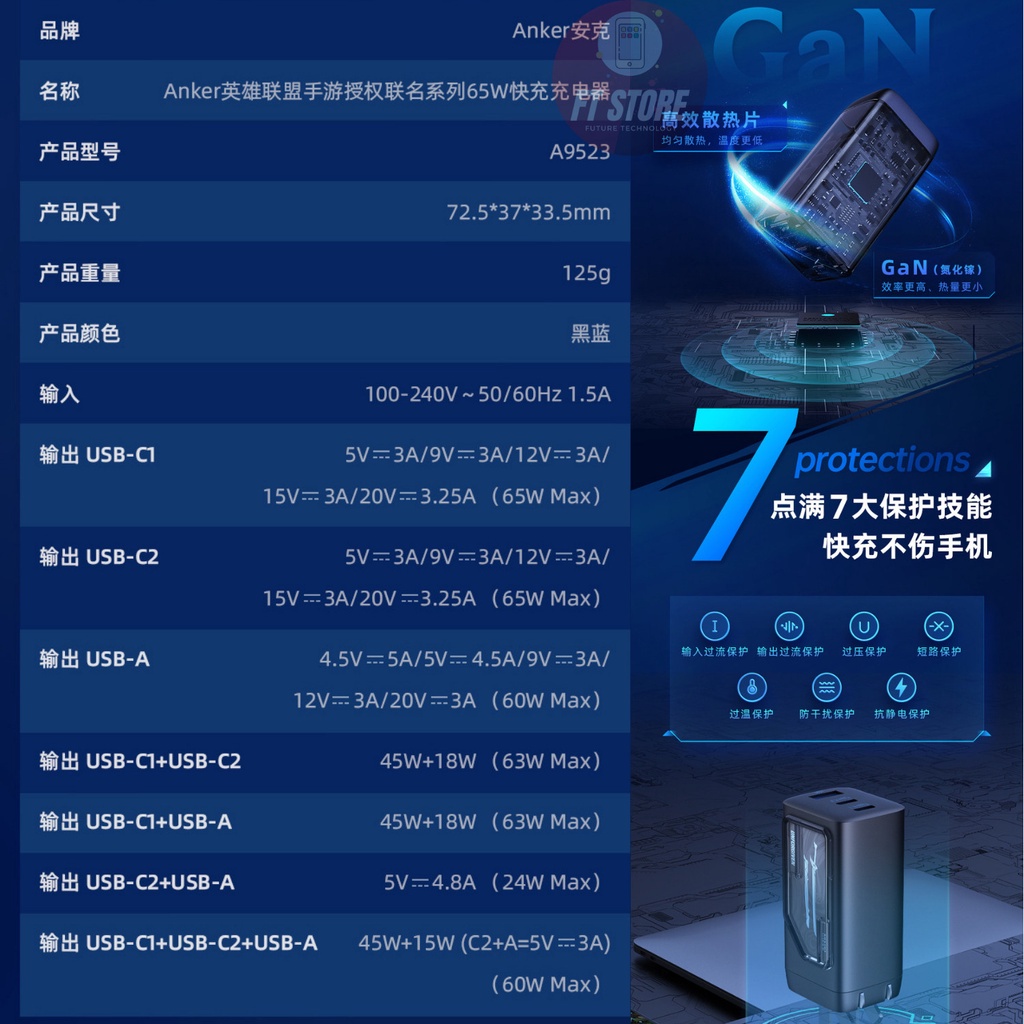 Củ sạc nhanh Anker 65W A9523 A9521 Liên Minh Huyền Thoại PPS, QC3.0, PD20w, PD30W - Chính Hãng