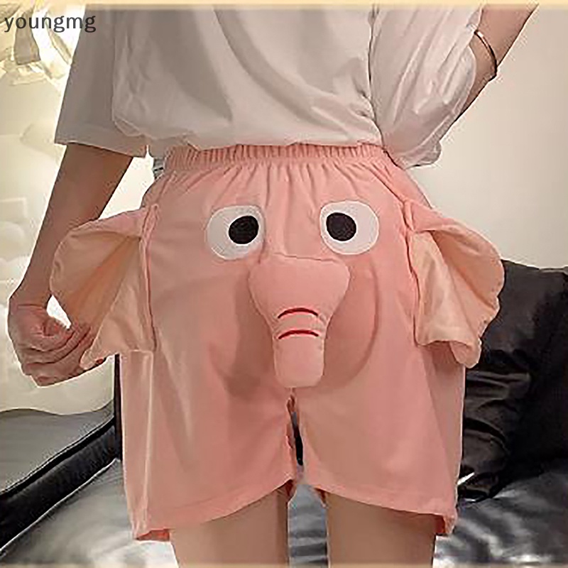 CAGJB Quần short lông mỏng hình chú voi và lợn con độc đáo dáng rộng co giãn vui nhộn cho cặp đôi