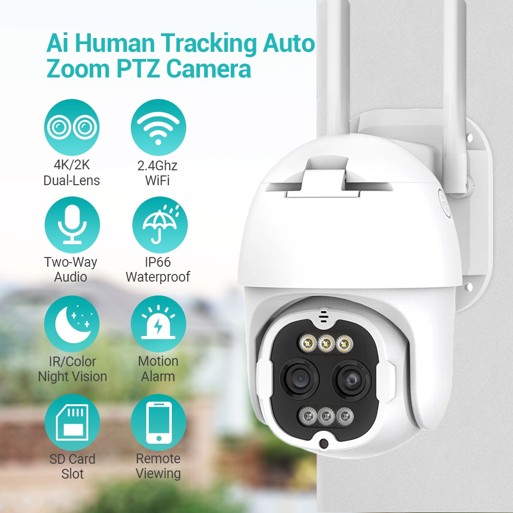 Camera an ninh HAMROL 4K 8MP ống kính kép 8X Zoom PTZ WiFi chống nước có tầm nhìn đêm màu sắc tự động