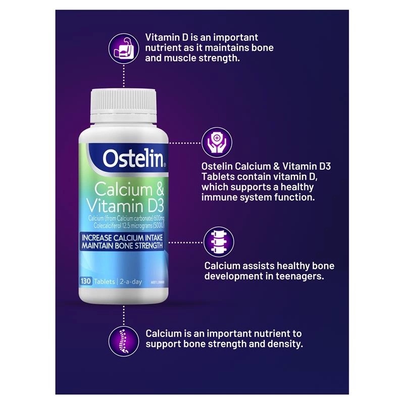 Sản phẩm này không phải là thuốc không có tác dụng thay thế thuốc chữa bệnh Calcium & Vitamin D3 Ostelin Úc (130 viên) với hàm lượng canxi được điều chỉnh một cách hợp lý phù hợp với nhu cầu ở từng độ tuổi, hạn chế tối đa tình trạng dư thừa canxi dẫn đến những hậu qu
