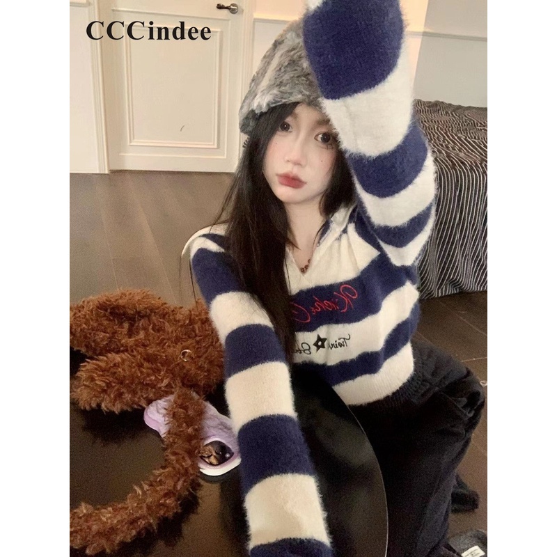 Cccindee Áo sweater Tay Dài Cổ Tròn Thêu Chữ Phối Màu Tương Phản Thời Trang 2023 Cho Nữ