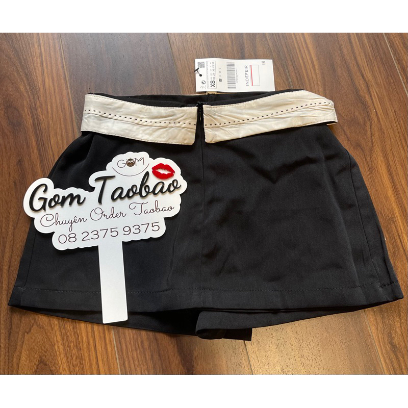 Chân váy đen cạp trắng có quần trong Za.ra Chân váy chữ A phối viền trắng cổ bẻ zr TBT