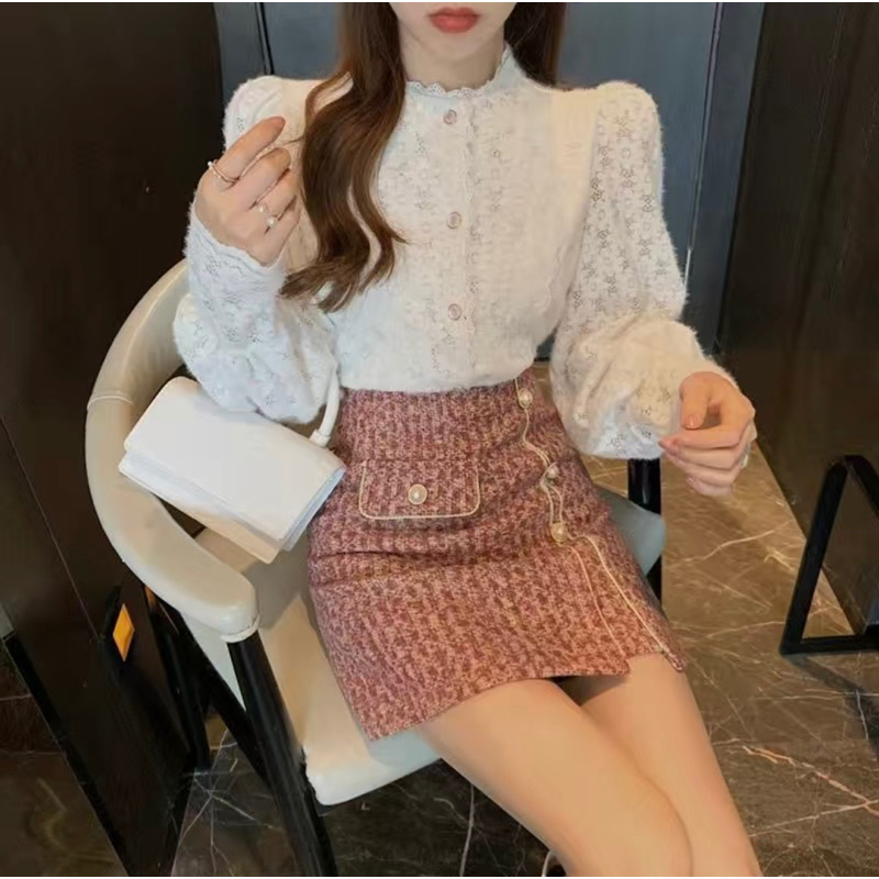 Chân Váy Dạ Tweed Cúc Ngọc Siêu Xinh Phong Cách Sang Chảnh_Hàng ORDER