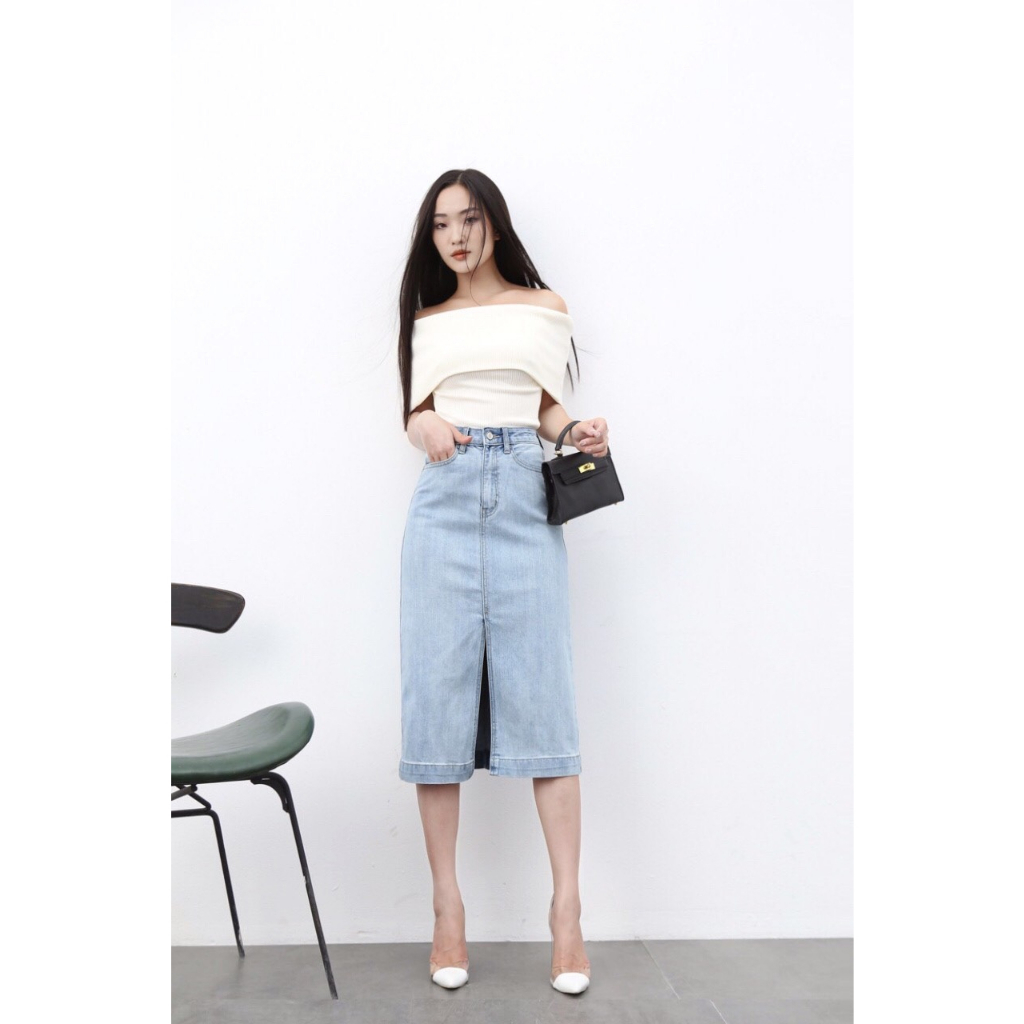 Chân Váy Jean Dài midi dáng A Dài xẻ trước CT JEANS