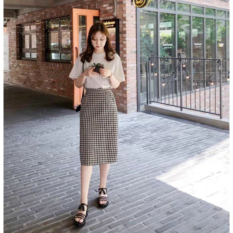 🌈 CHÂN VÁY KẺ CARO A DÀI XẺ SAU❤️