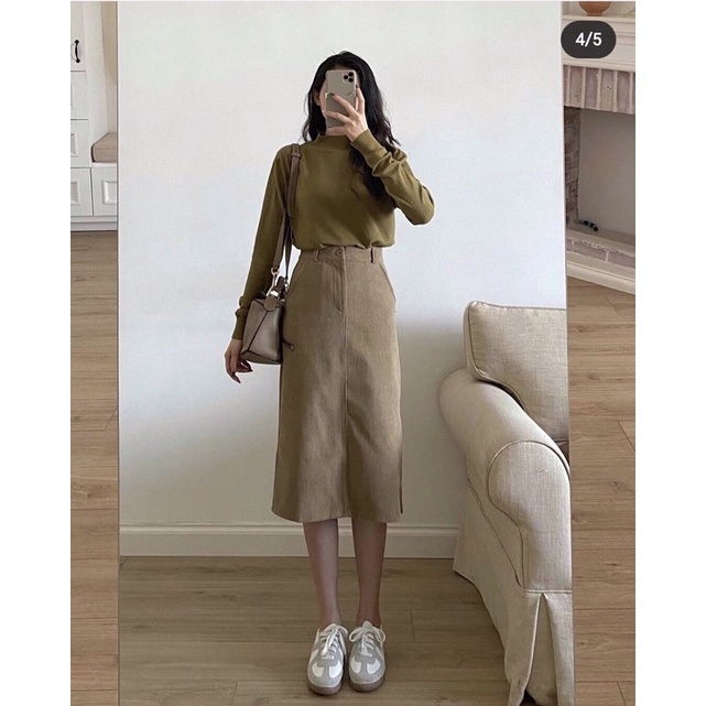 Chân váy nhung tăm dáng dài kèm ảnh video thật