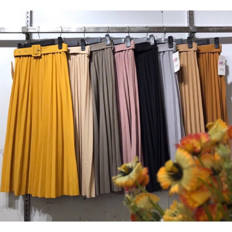 Chân váy xếp ly, chân váy dài kèm đai silive kiểu dáng sang trọng, chất vải mềm mịn