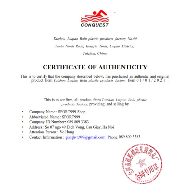 Chân vịt bơi lội Conquest là sản phẩm dùng cho luyện tập và thi đấu môn bơi lội, lặn. Chân vịt bơi lội Conquest được làm từ silicon cao cấp, có độ đàn hồi cao, mặt dưới có lớp gai chống trơn trượt. Phù hợp với mọi lứa tuổi tham gia bơi lội. Chân đế có độ đàn hồi cao g