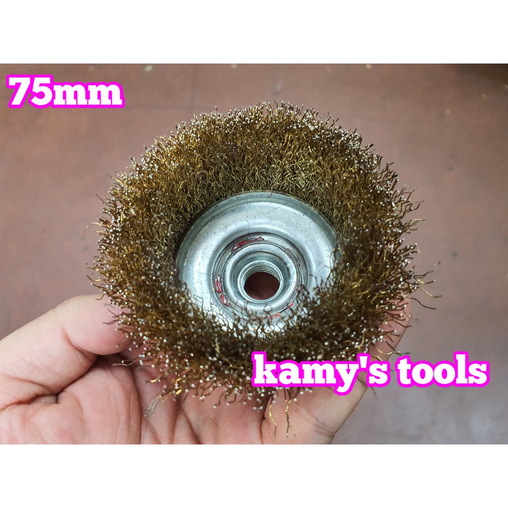 Chén cước 3 inch 75mm loại dày tán M10x1.5 và M14x2.0 Dụng cụ phục vụ cho việc đánh rỉ sét, mài trên các bề mặt kim loại hay phụ kiện cần đánh bay rỉ sét, đánh bay màu lớp lớn cũ để sơn mới... Đường kính chén cước: 3 inch 75mm Sợi cước màu vàng có đường kính 0.3mm loại dày. Được chia ra làm 2 loại là tán M10x1.5 và M14x2.0. Sử dụng để gắn vào các máy mài cầm tay để sử dụng. Thông thường máy mài máy cắt sử dụng đá 100mm sẽ có cốt M10x1.5, còn máy mài máy cắt cầm tay sử dụng đá đường kính 125mm có cốt M14x2.0.
