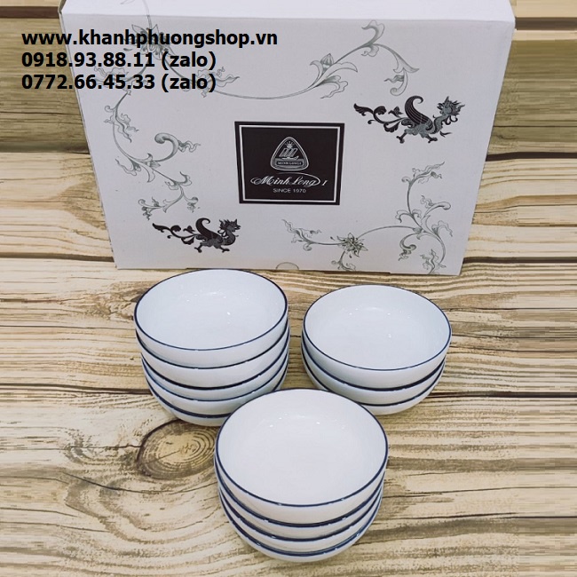 Chén chấm viền xanh dương sứ Minh Long - chén chấm viền xanh dương