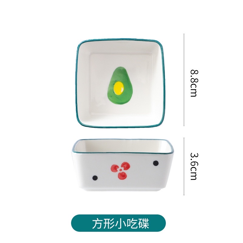 Chén vuông hoạ tiết hoa quả, chén chấm, chén gia vị, chén ăn dặm cho bé