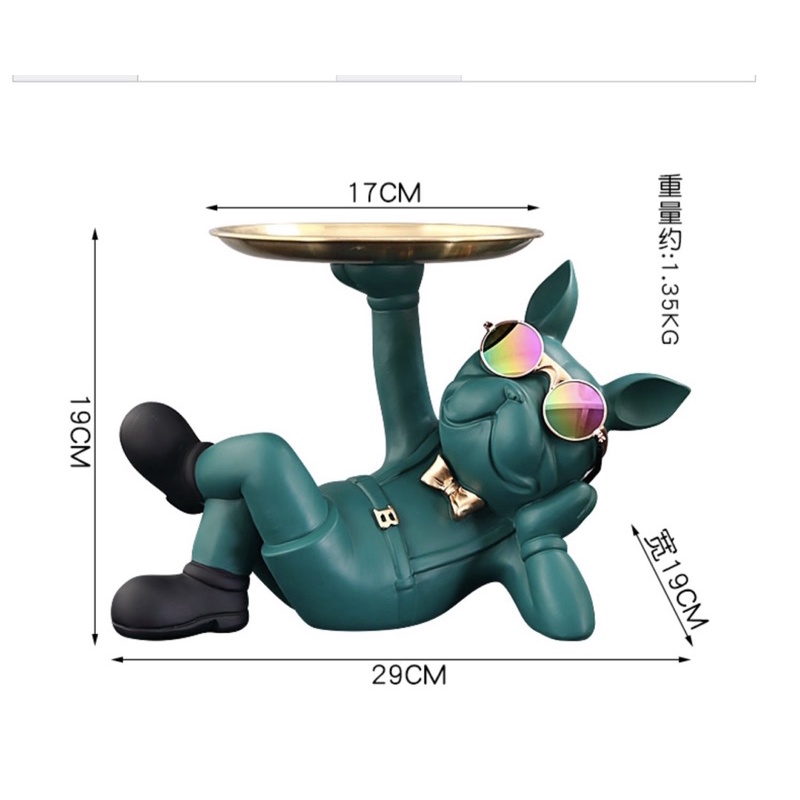 Chú Chó Decor Nằm Nghiêng Cầm Đĩa Sành Điệu Có Kèm Kính Mắt