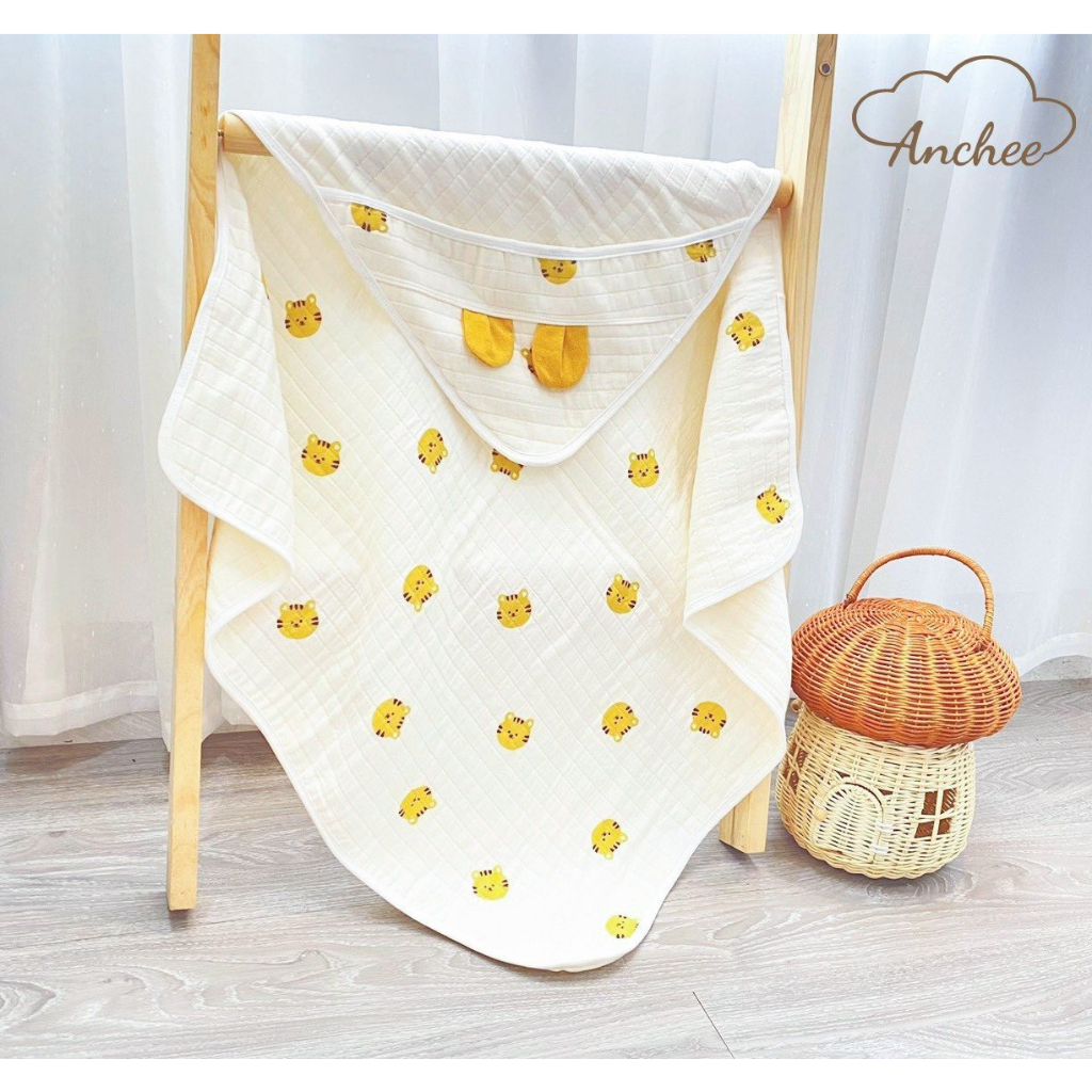 Chăn Ủ Choàng Xô Hàn Muslin Trần Bông Thu Đông Cao Cấp Anchee Cho Bé Sơ Sinh size 75*75cm