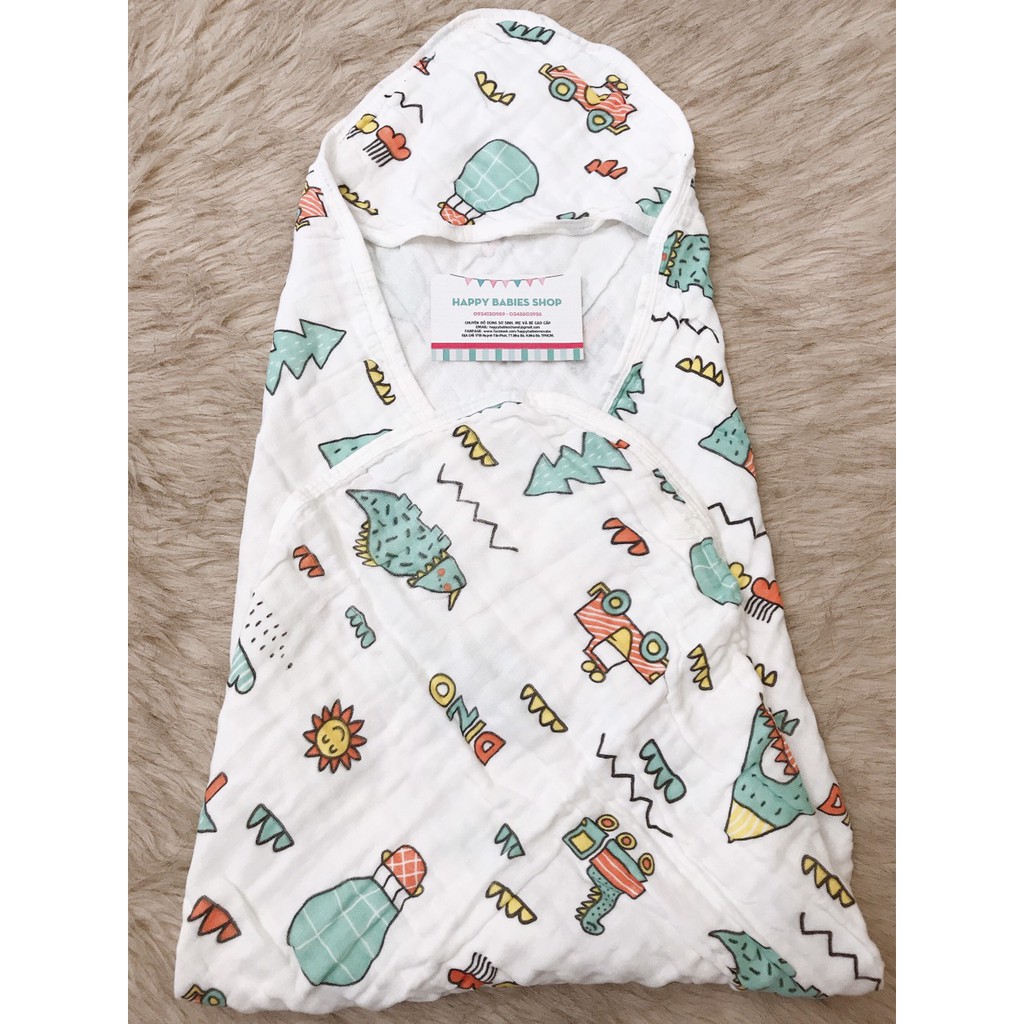 Chăn Ủ - Khăn Choàng Có Nón Cho Bé Sơ Sinh Chất Liệu Xô 2 Lớp