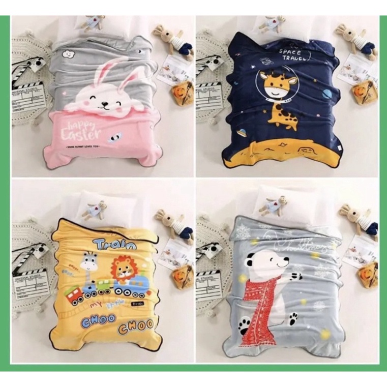 Chăn lông tuyết nhung hai mặt cho bé, Chăn vtv cho bé mùa thu đông đi học có in hình ngộ nghĩnh 1m*1m4