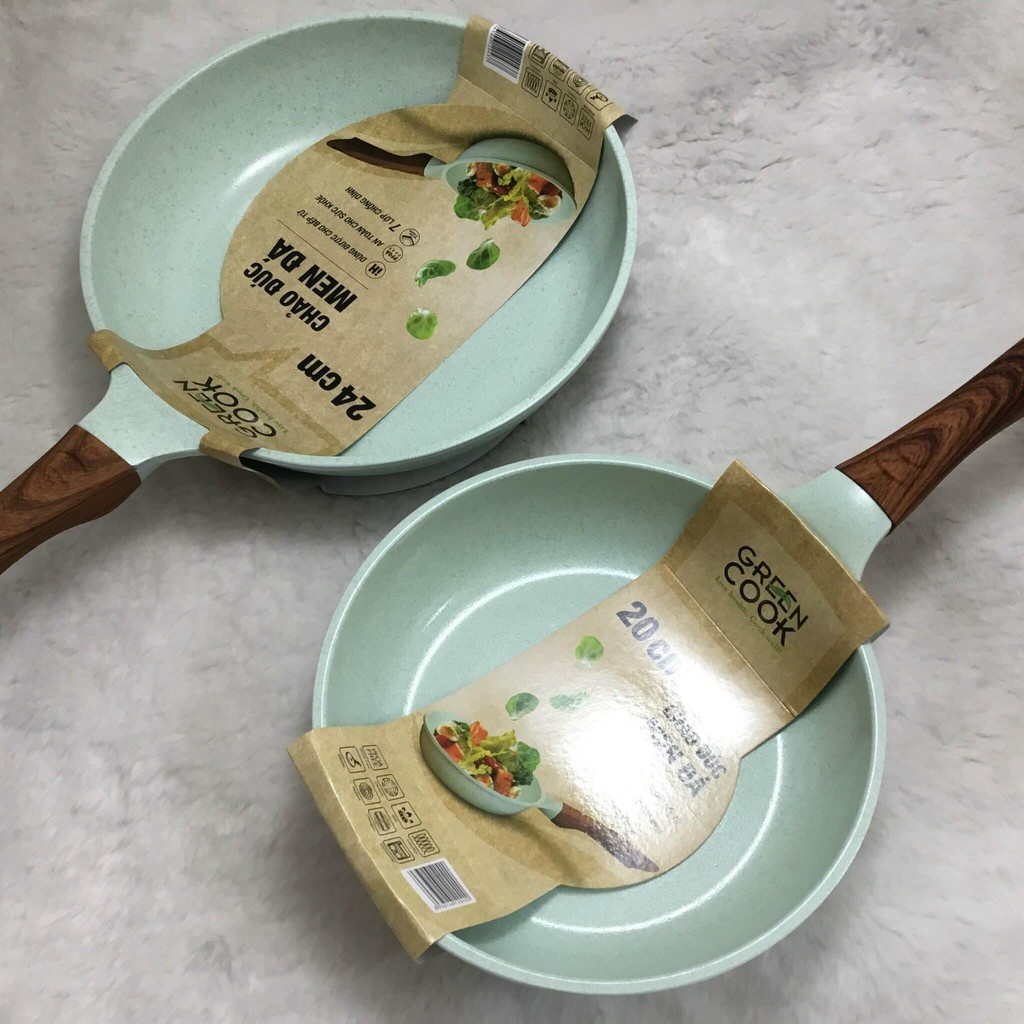 Chảo đúc đáy từ chống dính tráng men ceramic xanh ngọc Green Cook GCP06 size 20 - 24 - 26 - 28 cm công nghệ Hàn Quốc Được sản xuất theo công nghệ cao Hàn Quốc, phủ đá thiên nhiên siêu bền và thân thiện với môi trường. Phủ 7 lớp chống dính vân đá siêu bền, an toàn cho