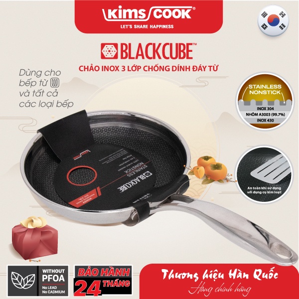 Chảo Blackcube INOX 3 lớp đáy từ chống dính Kims Cook
