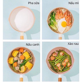 CHẢO CHỐNG DÍNH CÓ TAY CẦM ĐÁY SÂU KIỂU NHẬT BẢN sz: 18cm 🔥 Dùng được cho BẾP TỪ + BẾP GAS MÀU : TRẮNG SỮA - HỒNG - XANH - ĐEN Vừa nấu, vừa chiên, vừa xào nấu đc luôn. ✅Thân nồi dày dặn, phủ lớp chống dính vân đá y tế cao cấp, lòng chảo chống dính, dễ dàng vệ si