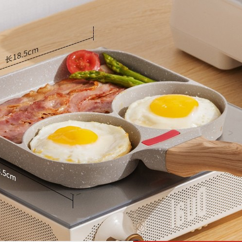 Chảo chống dính ba ngăn, chảo đá chiên trứng I Nấu bếp từ và bếp gas