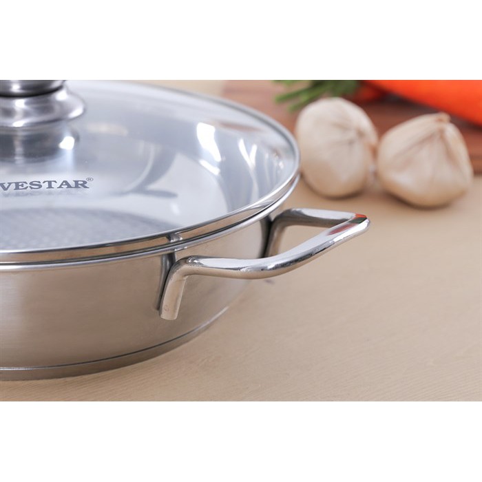 Chảo lẩu xào caro 3 đáy inox 430 Fivestar Standard nắp kính L24-3DG