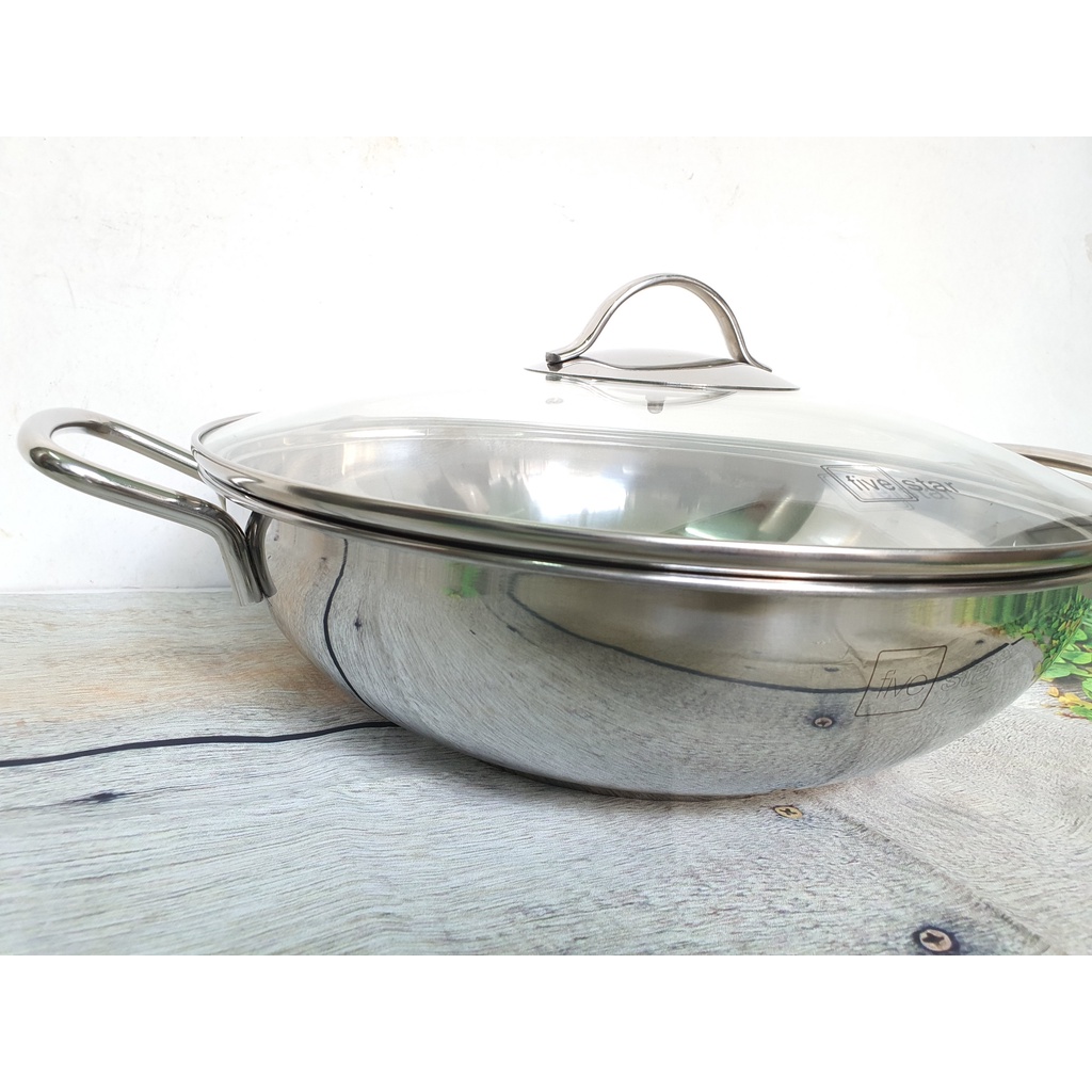 Chảo Lẩu xào sâu lòng 3 đáy inox 430 Fivestar 24-26-28-32cm Đáy từ Vung Kính