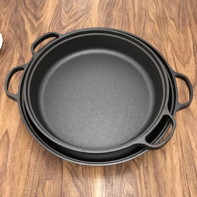 Chảo Nồi Gang Đế Bằng Đúc Nguyên Khối Chống Dính Tự Nhiên Kiểu Dáng 2 Tai Xách Dùng Cho Bếp Gas, Bếp Từ