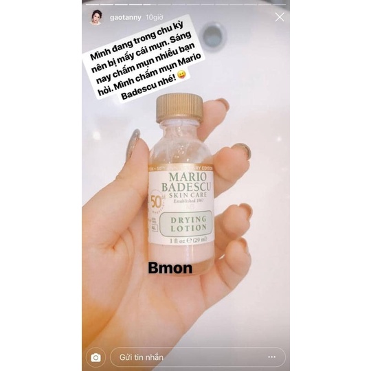 ☑️ 𝗖𝗵𝗮̂́𝗺 𝗺𝘂̣𝗻 𝗠𝗮𝗿𝗶𝗼 𝗕𝗮𝗱𝗲𝘀𝗰𝘂 𝗗𝗿𝘆𝗶𝗻𝗴 𝗟𝗼𝘁𝗶𝗼 chuyên sử dụng cho các loại: mụn đầu trắng, mụn sưng và viêm, mụn có dấu hiệu hình thành mủ trên bề mặt da... ✔️Giúp giảm nhanh các vết mụn, nhất là mụn trứng cá mà không làm khô da, ít gây kích ứng với da nhạy cảm. ✔️Làm khô đầu mụn, để mụn nhanh lành mà ko để lại thâm, sẹo. ✔️Ngừa mụn trứng cá, giảm kích ứng, viêm da. Đặc điểm nổi bật Nhìn bề ngoài bạn sẽ thấy sản phẩm mụn tương đối đặc biệt, có hai phần rõ rệt, phần cồn nhẹ phía trên công dụng bảo vệ lớp bột hồng bên dưới. Khi sử dụng, không được lắc sản phẩm mà dùng bông tâm để lấy phần bột hồng chấm trực tiếp lên mụn. Thành phần chính gồm có lưu huỳnh, acid salicylic, zinc oxit và các thành phần cồn nhanh chóng làm khô khác sẽ giúp sản phẩm thấm sâu trên bề mặt da để các hoạt chất còn lại thực hiện chức năng mụn, giảm sưng tấy ngay trong đêm đầu sử dụng. Do đặc tính thấm sâu và mụn tại chỗ, sản phẩm có tác dụng cho cả mụn vùng ngực và lưng. 💎 HDSD: - Dùng ở bước cuối cùng trong chu trình chăm sóc da, nên dùng vào buổi tối. - Khi sử dụng không được lắc chai, để dung dịch tách làm 2 phần rõ rệt. - Dùng tăm bông chấm thẳng xuống phần màu hồng (chấm mạnh vào). - Lấy vừa đủ phần bột hồng và chấm lên đốt mụn. - Đối với vùng mụn hở, khi sử dụng sản phẩm sẽ nghe rát nhẹ, đó là tác động của cồn, tuy nhiên cảm giác sẽ nhanh chóng hết khi sản phẩm khô lại trên da.