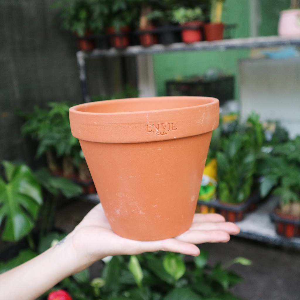 Chậu đất nung ENVIE gờ ly vintage, có 2 kích thước: - Size M: 14x12cm (Đường kính x chiều cao) - Size L: 16x14cm (Đường kính x chiều cao)