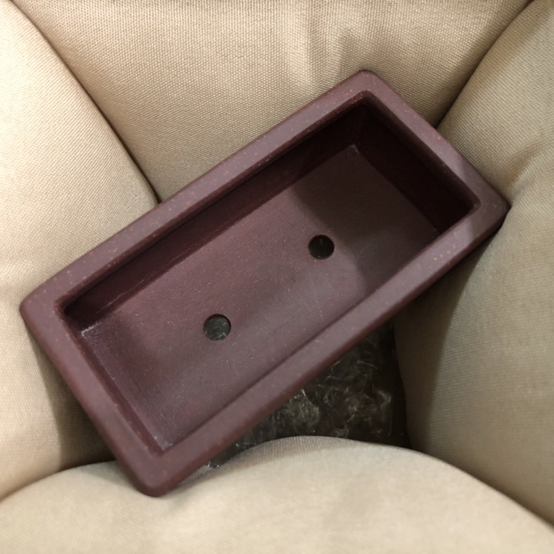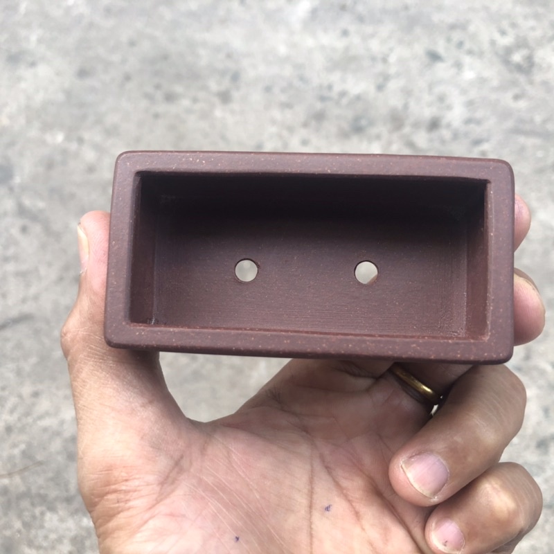Chậu bonsai khắc tay-Kích thước cao: 2.6cm- lọt lòng: 7.1cm-3.2cm -phủ bì: 8.3cm-4.3cm.