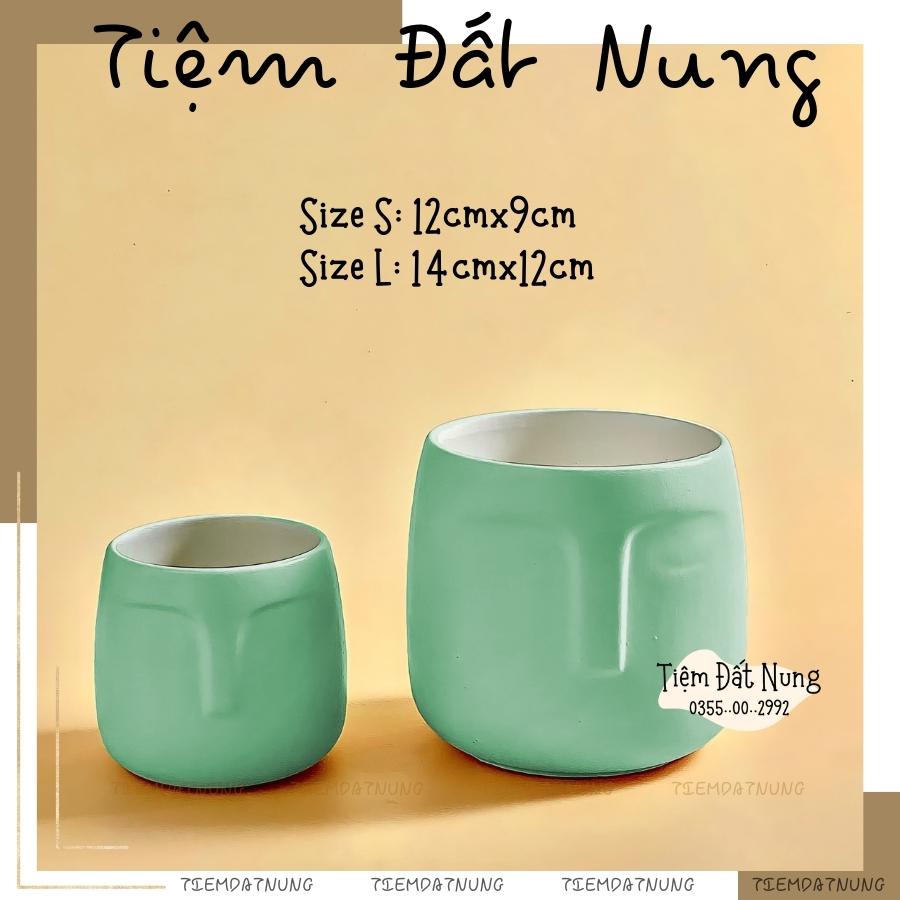 Chậu cây để bàn, Chậu trồng cây cảnh văn phòng dáng Mặt Người tiệm đất nung Bát Tràng