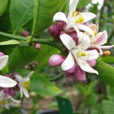 Chậu Cây Chanh Bông Tím Thái Lan đang bông trái.