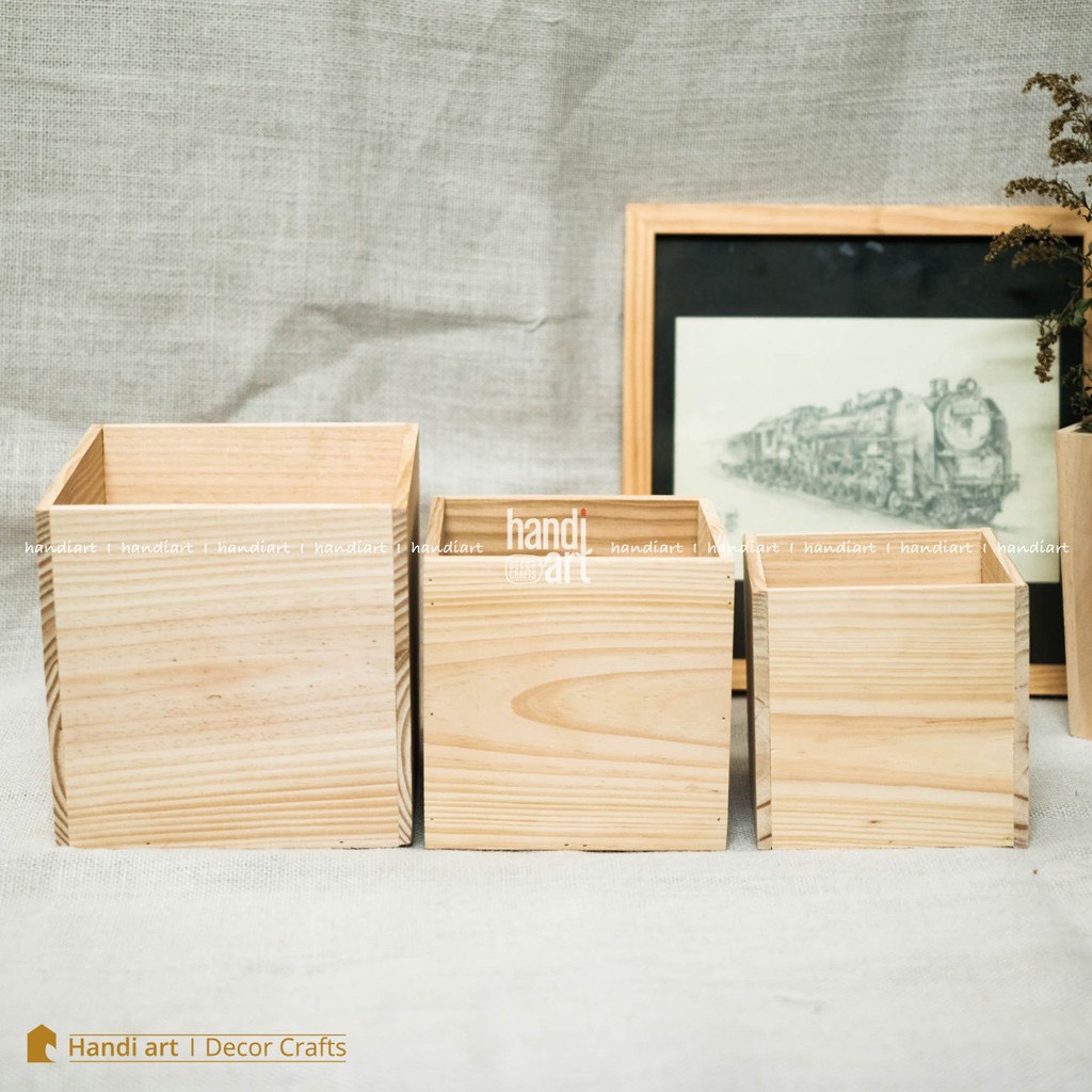 Chậu gỗ vuông- hộp gỗ vuông decor - gỗ thông tự nhiên